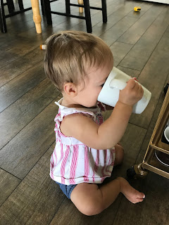 - We switched you from formula to cow's milk. The transition went fine, and I'm singing the hallelujah chorus that we get to buy a gallon of milk for ~$2 every other week instead of a container of formula for $20 every other week.